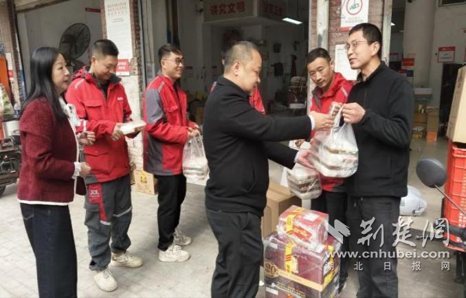 為讓快遞員在高強度工作中感受到關懷,近日,江漢區(qū)唐家墩街道香江新村社區(qū)黨委聯(lián)合湖北省中西醫(yī)結合醫(yī)院職工食堂,于“雙十一”期間將“小哥食堂”的溫暖送至京東、德邦等快遞網(wǎng)點,為一線快遞員送上熱騰騰的午餐,用實際行動表達敬意與支持。