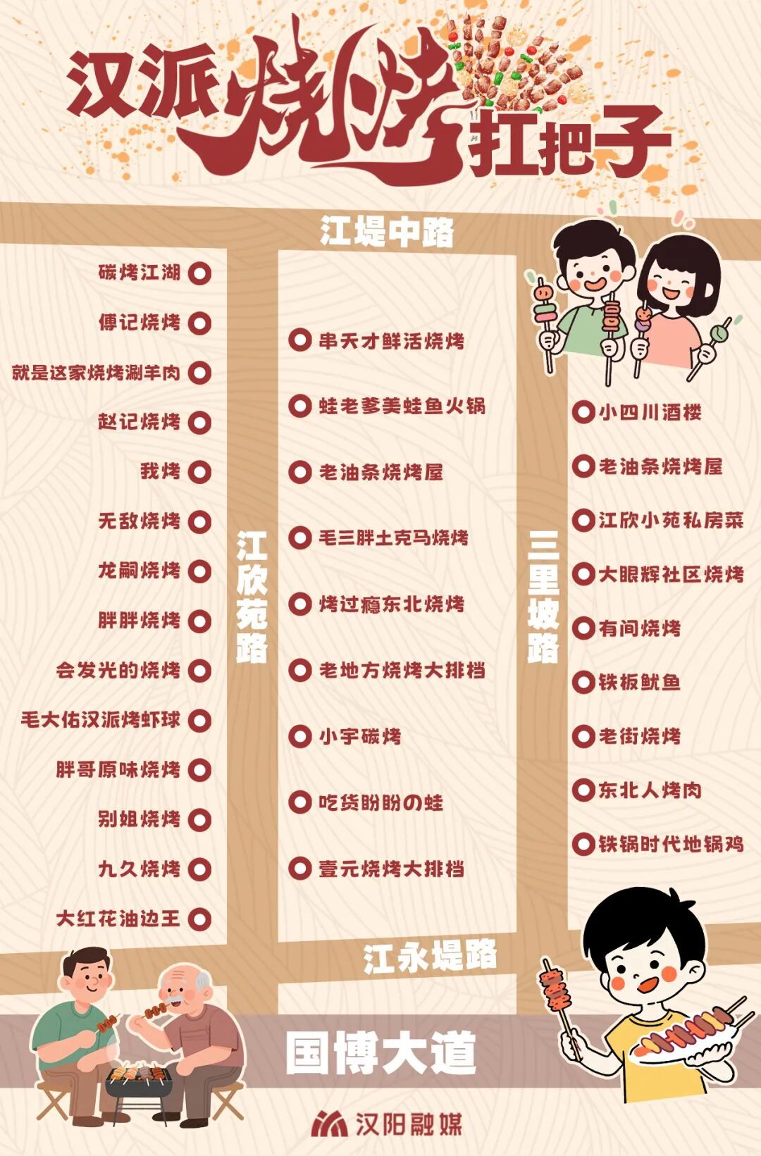 這個(gè)周末,不妨約上三五好友,來漢陽江欣苑路赴一場“舌尖上的武林大會(huì)”,炭火明滅間,總有一串能治愈你的靈魂,總有一杯酒能讀懂你的故事。
