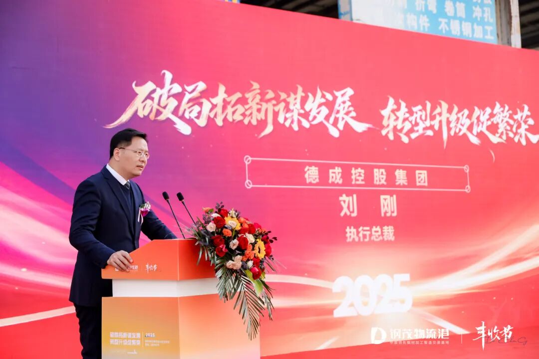 當(dāng)日上午9時,活動拉開序幕。德成控股集團(tuán)執(zhí)行總裁劉剛致辭,回顧園區(qū)十年發(fā)展歷程,闡述從“傳統(tǒng)市場”到“智造引領(lǐng)”的戰(zhàn)略轉(zhuǎn)變。湖北省工商聯(lián)、武漢市工商聯(lián)、江夏區(qū)等政府代表應(yīng)邀出席并致辭,對鋼茂物流港的轉(zhuǎn)型路徑與產(chǎn)業(yè)貢獻(xiàn)予以高度認(rèn)可。