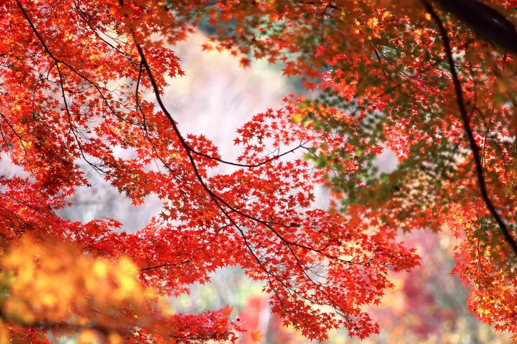 3.山間步道平拍漫山紅葉,記錄霧氣繚繞的森林秘境,在霧氣彌漫時,能捕捉到光影穿過薄霧的絕美瞬間。