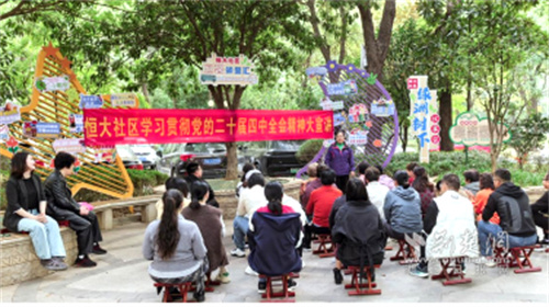 社區(qū)黨委堅(jiān)持把理論武裝擺在首位,著力構(gòu)建立體化宣講矩陣。創(chuàng)新打造“綠洲樹下”“小亭議事”“周三有約”等特色微陣地,充分發(fā)揮“社區(qū)合伙人”中老黨員、退伍老兵、先進(jìn)模范等榜樣力量的核心作用,組建“紅色宣講團(tuán)”。宣講團(tuán)成員化身“草根講師”,走出會(huì)議室,深入綠蔭下、小亭中,以百姓視角、武漢方言、拉家常方式,生動(dòng)解讀二十屆四中全會(huì)精神等理論及最新政策,使黨的聲音更鮮活、更可感。在“潤(rùn)物有聲”的微課堂里,居民圍坐探討、邊聽邊議、有問有答,實(shí)現(xiàn)了理論學(xué)習(xí)“零距離”、思想傳播“接地氣”。同步開展“治理金點(diǎn)子”征集活動(dòng),引導(dǎo)居民將學(xué)習(xí)成果轉(zhuǎn)化為參與社區(qū)治理的實(shí)際行動(dòng),圍繞公共事務(wù)、環(huán)境整治、鄰里互助等議題積極建言獻(xiàn)策,累計(jì)收集有效建議100余條。