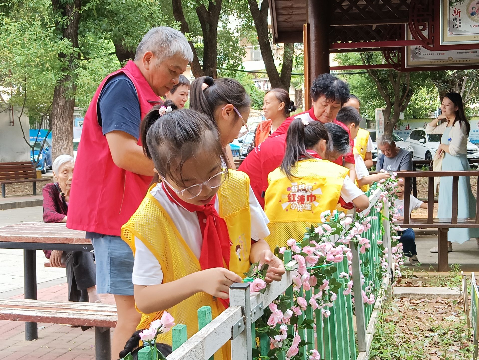 “同心薈”志愿服務(wù)隊(duì)裝飾同心花圃