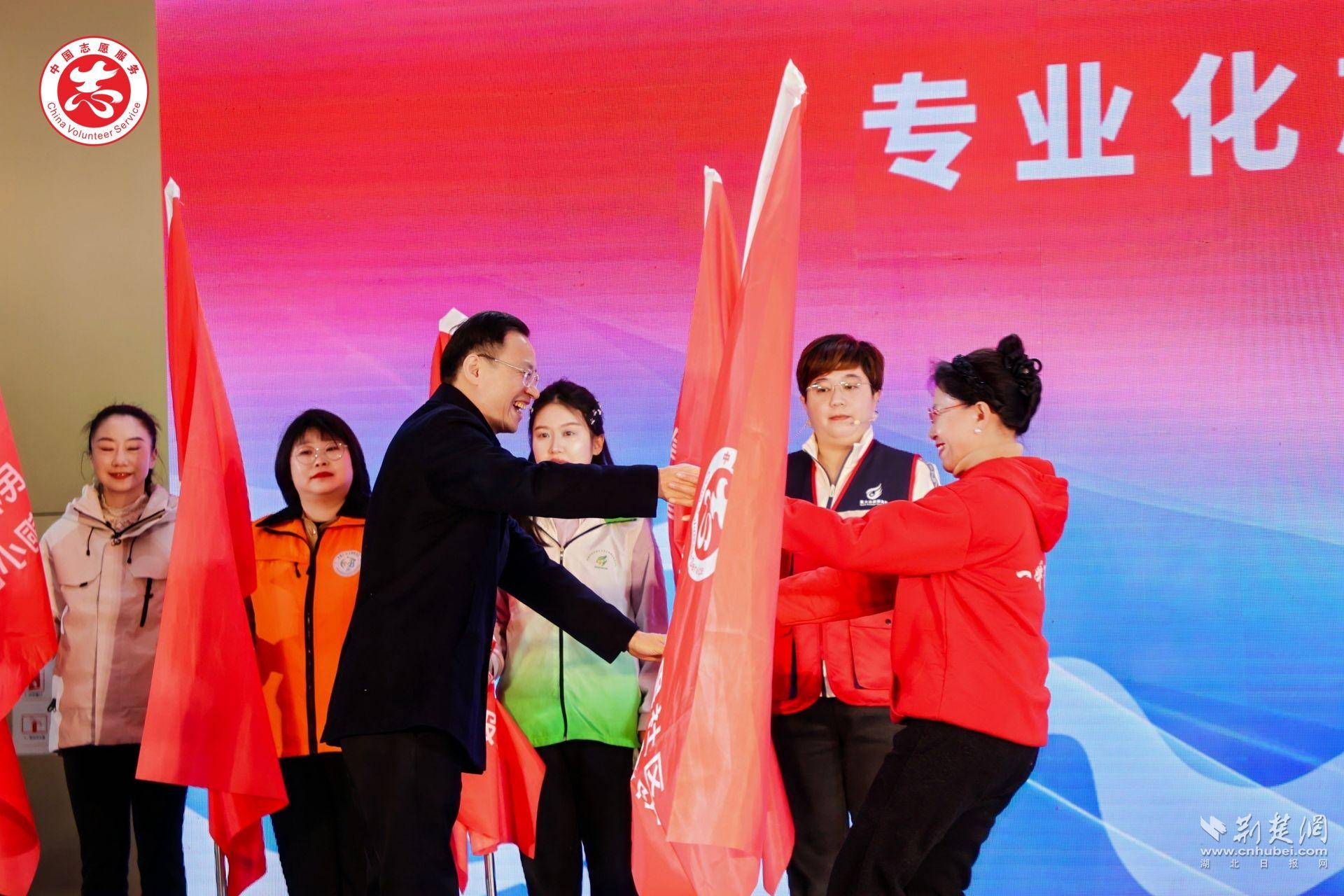 為進(jìn)一步凝聚志愿力量,現(xiàn)場(chǎng)還為來(lái)自醫(yī)療、教育、殘障服務(wù)等十五支專業(yè)化志愿服務(wù)隊(duì)進(jìn)行了授旗,標(biāo)志著江漢的志愿力量將以更清晰的方向、更專業(yè)的姿態(tài)繼續(xù)向前。