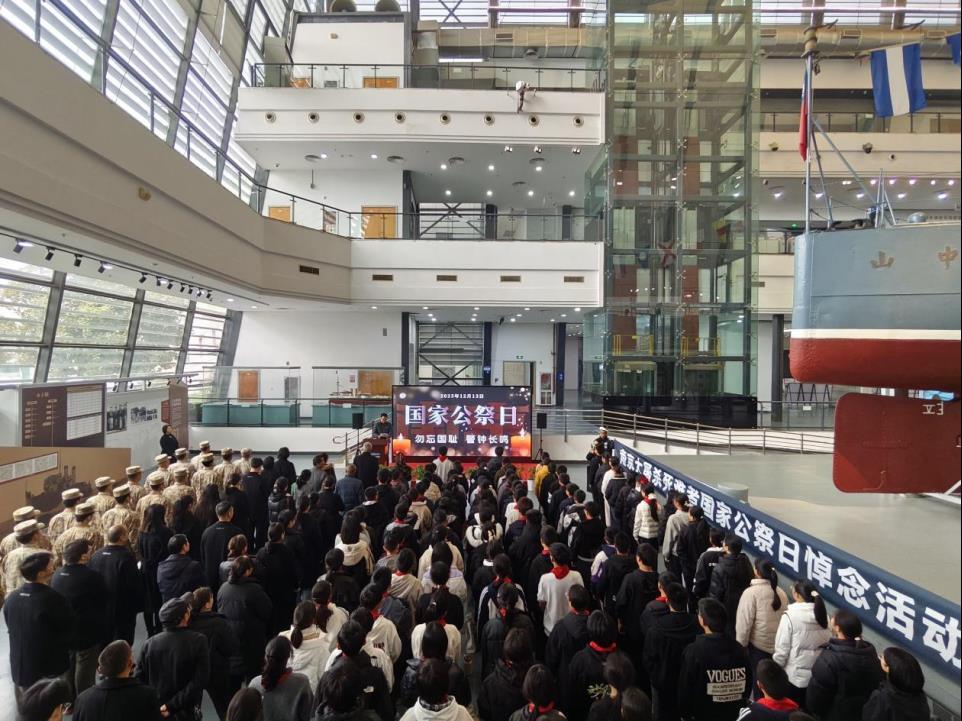 12月12日上午,中山艦紀(jì)念區(qū)與解放軍駐金口某部、江夏區(qū)求實中學(xué)在中山艦博物館艦體陳列廳,舉辦“銘記歷史 珍愛和平”國家公祭日主題紀(jì)念活動,深切緬懷南京大屠殺死難同胞,紀(jì)念中國人民抗日戰(zhàn)爭暨世界反法西斯戰(zhàn)爭勝利80周年、中山艦蒙難87周年以及南京大屠殺慘案發(fā)生88周年。