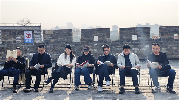 本次讀書會選址于武昌古城墻,場景設(shè)置頗具深意。一側(cè)是斑駁厚重的明代舊磚,承載著城市悠遠(yuǎn)記憶;另一側(cè)是企業(yè)家手中關(guān)于AI的前沿書卷,指向充滿可能的科技未來。厚重歷史與尖端技術(shù)在此交匯,恰呼應(yīng)了“智啟未來 城載古今”的活動主題。