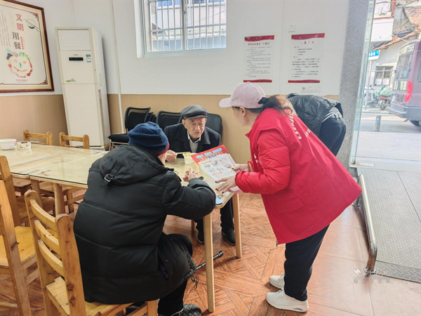 志愿者向老人科普冬季安全知識。 通訊員供圖