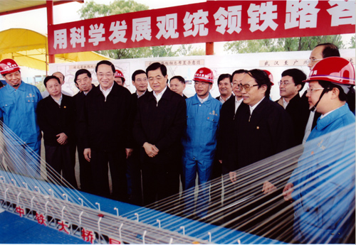 胡錦濤考察武漢天興洲公鐵兩用長(zhǎng)江大橋工程并作重要指示